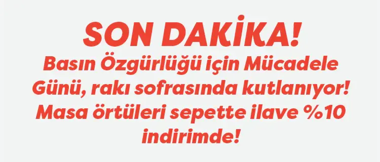 - SON DAKİKA! Basın Özgürlüğü için Mücadele Günü, rakı sofrasında kutlanıyor! Masa örtüleri sepette ilave %10 indirimde!