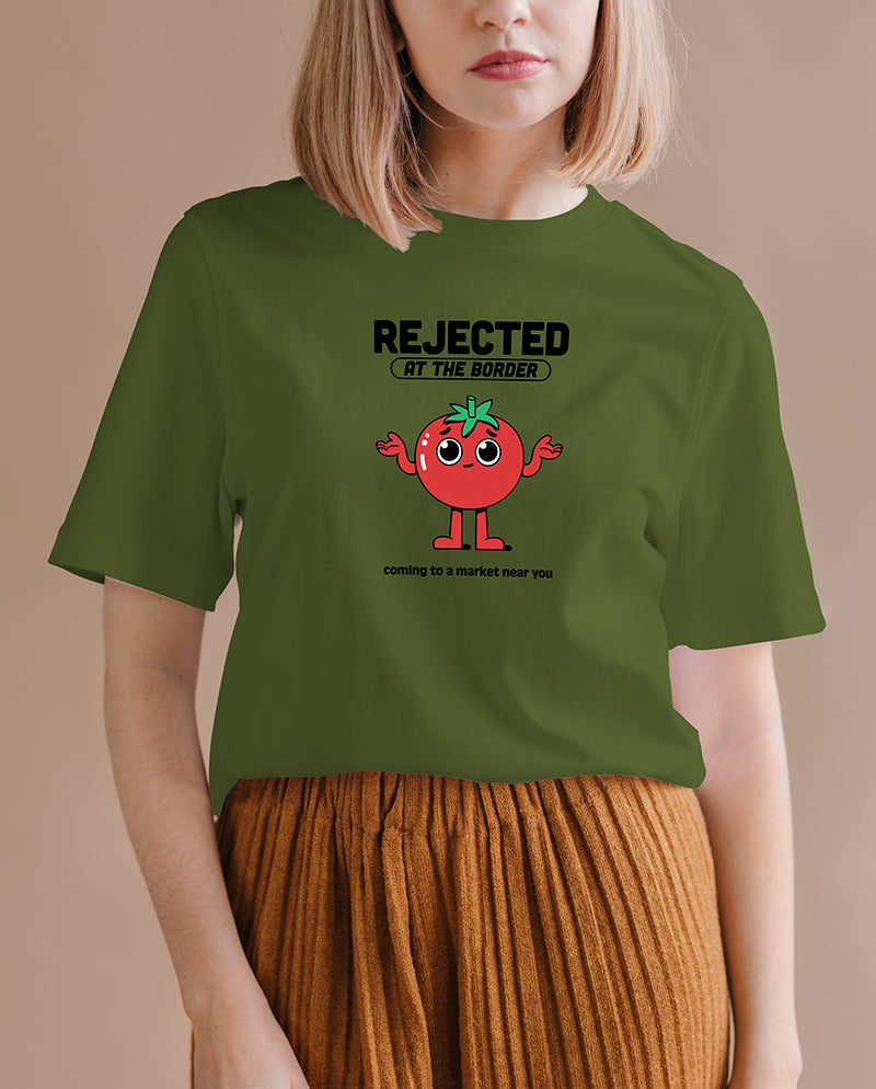 Bu domates gümrükten geçemedi ama gardrobunuza girmeye hazır. Mahalle Studio, çok ince bir yerden politik mizahı tasarımına taşımış. Biz de tişört olarak hazırladık. Giyin, tek kelime etmeden sokakta “tarım politikaları” dersi verin.