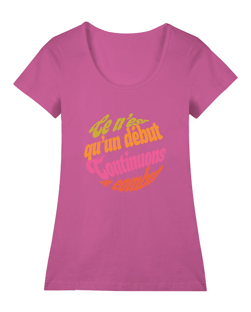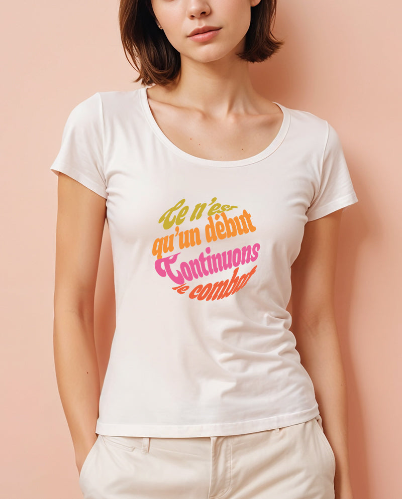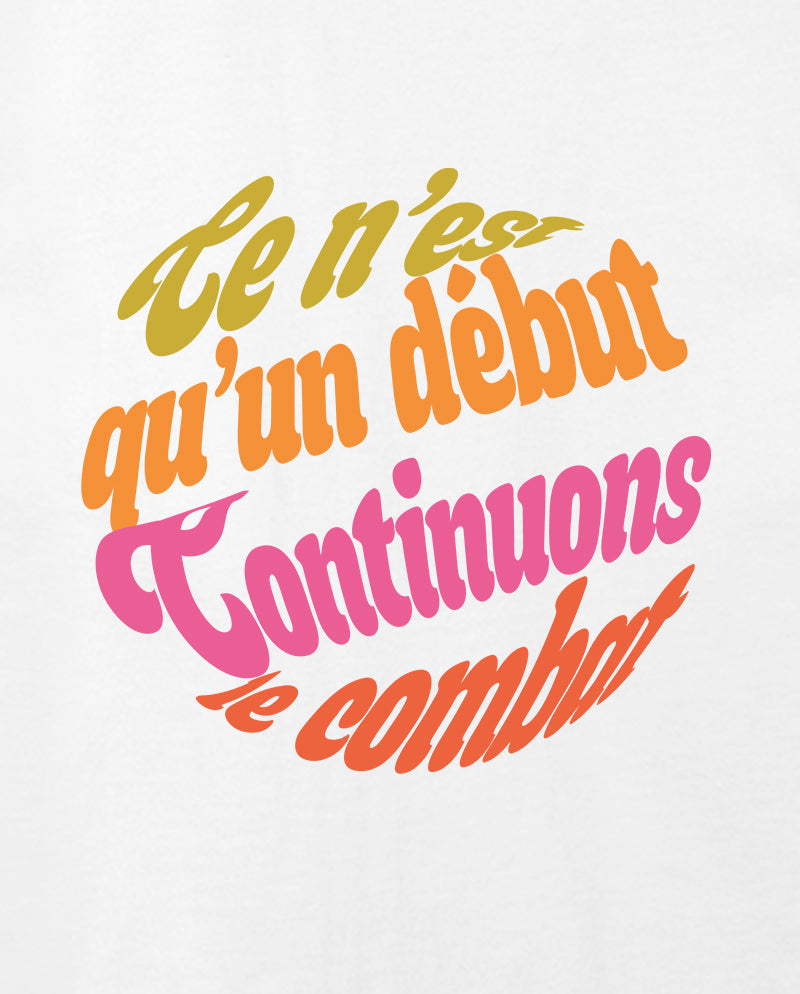 Fransızlar politik slogan konusunda oldukça yaratıcı ve dünya politik slogan tarihine geçen işlere imza atmış bir halk. “Bu daha başlangıç, mücadeleye devam!” da her dilde karşılığını bulmuş bir slogan. Orijinal dilinde bir tasarım yapalım dedik. Tavrını tarzına yansıtanlar için