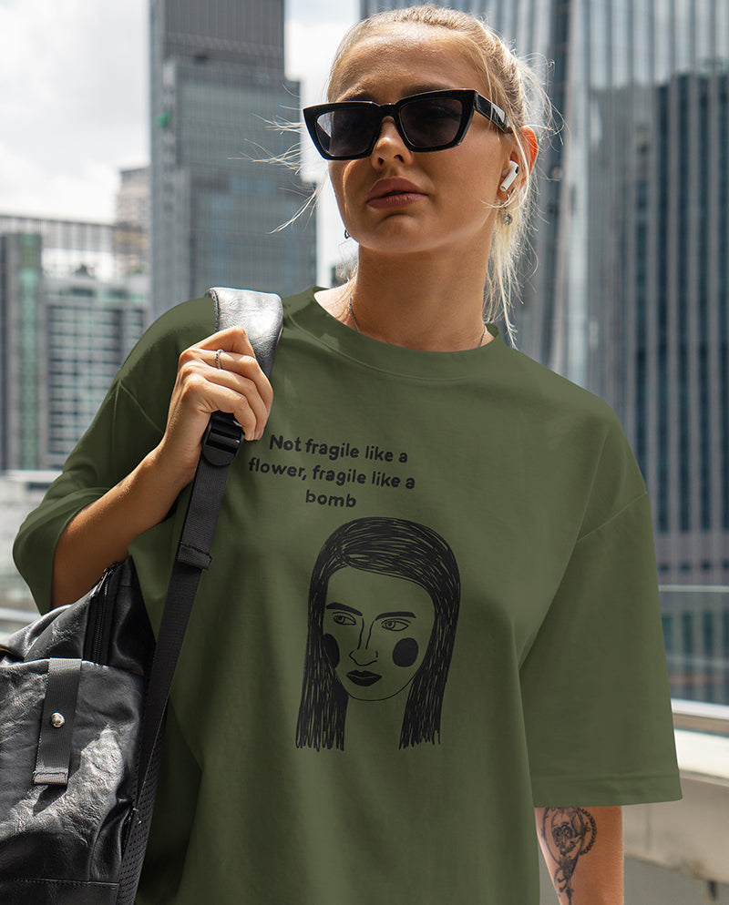 Gökçe Altunay’ın “Not fragile like a flower, fragile like a bomb” tasarımlı tişörtleri Anason İşleri’nde.