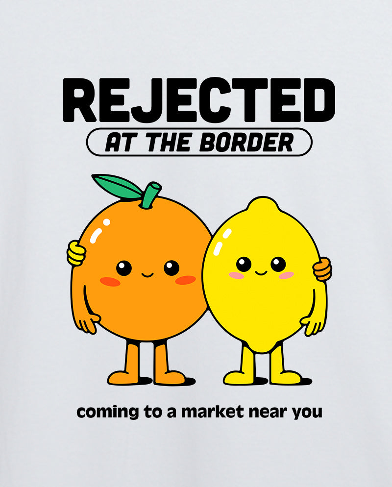 Hayat bize gümrükten dönen limonlar verdi, biz de onlardan tişört yaptık. Mahalle Studio, bu limonlardan limonata olmaz demiş olacak ki bir güzel süsleyip politik-mizahi bir tasarıma çevirmiş. Giyin, tek kelime etmeden sokakta “tarım politikaları” dersi verin.