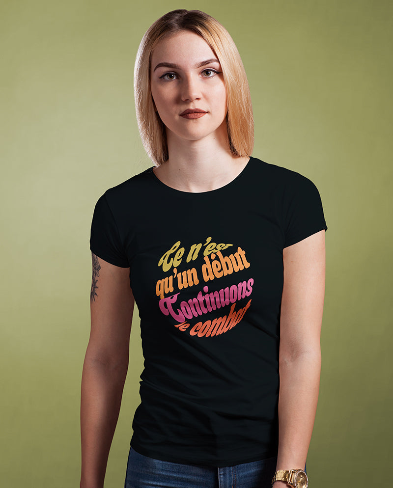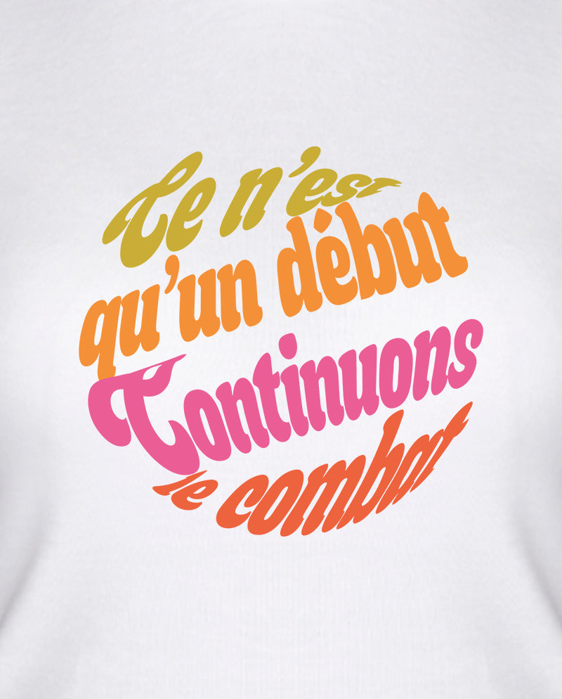 Fransızlar politik slogan konusunda oldukça yaratıcı ve dünya politik slogan tarihine geçen işlere imza atmış bir halk. “Bu daha başlangıç, mücadeleye devam!” da her dilde karşılığını bulmuş bir slogan. Orijinal dilinde bir tasarım yapalım dedik. Tavrını tarzına yansıtanlar için